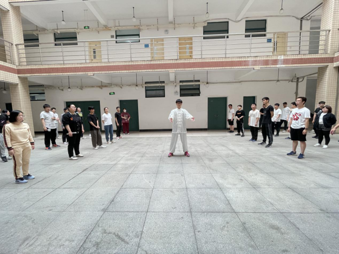 根据学院《关于全面加强和改进新时代学校体育工作的实施方案》等相关文件精神,为了进一步丰富校园文化生活,激发信机系学生的体育兴趣,切实提高信机系学生的健康素质,近期,信机系组织学生开展太极拳学习活动。信机系邀请太极拳初级教练、20网络贯通2班严晨亮同学进行太极拳法的教授。此次活动分为两次,分别在6月1日、2日中午于思行楼和力行楼底楼展开,共有一百多名同学参与。