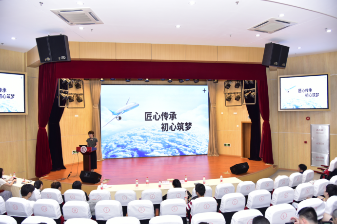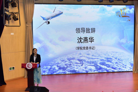 会上,沈燕华书记首先为大会致辞,她对陈梦云的到来表示热烈的欢迎,她介绍道:2012年9月,陈梦云从学院毕业后加入上飞公司,从事复材零件制造7年,她高质量完成了C919平尾复合材料零件的铺贴和制袋工作。她心思缜密、独运匠心,攻克大型壁板胶接难点,建立制袋标准规范,独创手铺三要素操作法。从陈梦云身上,可以看到工匠精神的完美诠释,精益求精、执着敬业、敢于创新,她七年如一日地追求着职业技能的极致化,靠着传承和钻研,凭着专注和坚守,创造了一个又一个奇迹。沈燕华书记号召在座青年学子以陈梦云为榜样,追寻陈梦云学姐的成长足迹,以她为榜样,不忘初心,践行工匠精神,努力奋斗,成就梦想。