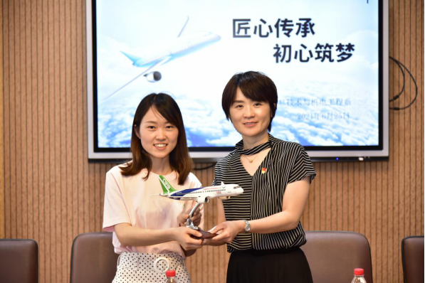 最后,陈梦云为了表示对母校的感谢,特将一架C919飞机模型赠与母校,祝愿学院年年桃李,岁岁芬芳!(信机系)
