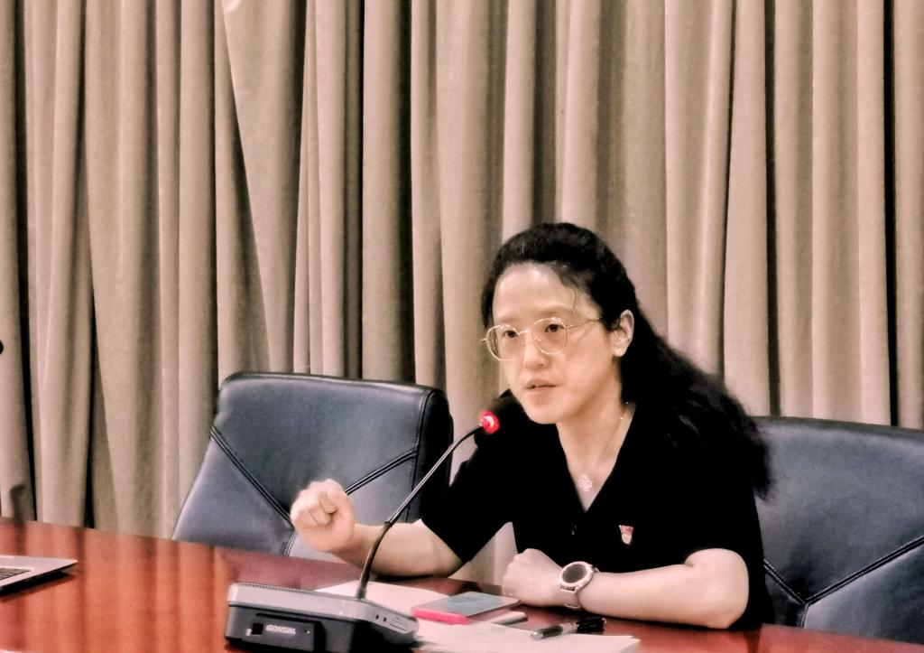 首先,曹娜按照学校党委党史学习教育工作要求,部署了近期党史学习的重点内容:学院各基层党支部应把深入学习贯彻习近平总书记“七一”重要讲话作为当前和今后一个时期一项重大政治任务,围绕巩固党史学习教育第一阶段取得的成效,全力做好党史学习第二阶段的各项工作,教育引导广大党员勇担当、讲奉献、谋发展,贯彻新发展理念,构建新发展格局,推动学院党建工作高质量发展。特别是将“学党史、办实事、开新局”的成效显现与学习习近平总书记关于教育、科技的系列讲话精神和论述结合起来。将党史学习教育融入教育教学,扎实推动“七一”重要讲话精神进教材、进课堂、进头脑,组织思政课教师集体备课将讲话精神融入思政课教学,在秋季学期“开学第一课”中将讲话精神作为重点内容。期间,曹娜还就9月份开展的党风廉政教育月情况进行总结,对筹备2021年工作总结进行布置,并强调要结合学院“十四五”规划,做好2022年工作规划等。