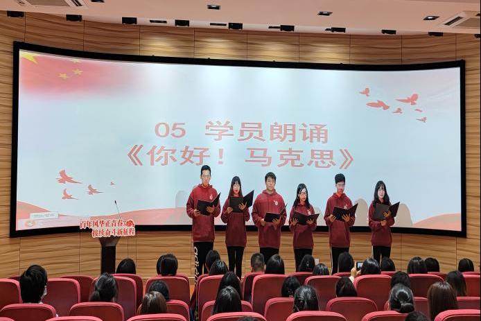 会上,第一期青马学员朗诵展示《你好!马克思》。由第一期青马班的优秀学员代表郑欢琪同学及第二期新学员代表徐振羽同学发言,他们呼吁青马学员担负起新时代赋予青马学员的历史使命,并带领学员们进行宣誓。