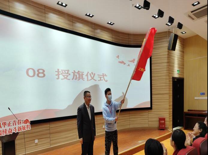 学院党委副书记李越为青马班授旗,学员代表袁佳非接过旗帜。青马旗作为青马班的精神指引,凝聚着院党委对大学生骨干的殷切期望和重托。