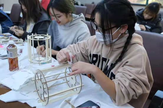 一摞红纸,一盏灯,一双灵巧的手,同学们在老师的指导下,把一张张纸变成精美艺术品,剪纸、宫灯、蒲扇艺术走进校园,不仅弘扬了我国传统的民间艺术,还培养同学们的想象力和创造力,提高审美品位和审美能力。(应用艺术系)
