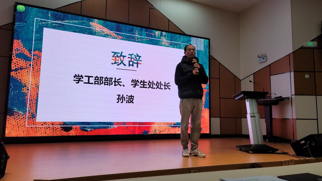 大会伊始,学工部部长、学生处处长孙波老师致辞。他强调,易班工作总站要适应新形势新任务的需要,全面加强思想观念、工作作风建设,敢于面对问题,解决问题,把时间用在学习工作上,把精力投入到服务行健师生中,建设成为一支学校放心、学生满意的网络思政工作队伍,创造实实在在的工作成绩。二是要从更高的层面落脚到自己的个人身上,他希望同学们能够在学生处易班工作总站多多锻炼自己的能力,发挥自己的能量,为行健师生做出积极贡献。三是要树立学生干部的良好形象,他表示良好形象是政治素养、道德品质、服务意识、奉献精神和工作方式方法等诸多方面的综合体现。
