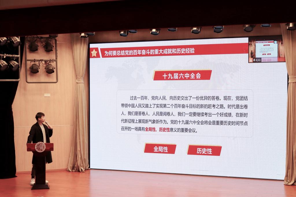 开班仪式过后,宋海涛老师以“心有所信方能行远”为题进行授课。“党有号召,团有行动”,他以党的十九届六中全会精神为主线,结合共青团发展历程、重点人物杰出事迹及相关时政热点,从共时、历时纵横双向回顾党团百年光荣岁月。同时,他希望各位入团积极分子能够坚定理想信念,牢记初心使命,高扬青年远大理想的旗帜,担当青春本色,不负时代期许,早日成为一名光荣的共青团员。