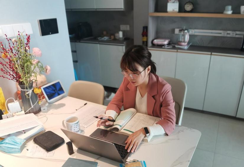 面对网络授课的安排,同学们积极对待,热情高涨,展现出极强的自律性和主动性,全神贯注听讲,认真细致地做笔记,学习效果良好。