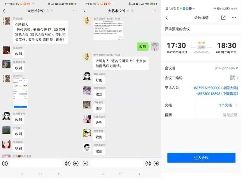 3月14日起,学院“线上教学”顺利开课,各学系教学工作有序开展。学院领导带领教学管理人员第一时间对原有教学安排进行重新部署,各学系高度重视,通过腾讯会议等平台组织全体任课教师开展线上教学工作布置及教学软件培训线上会议。会上,各学系要求教师认真组织线上课堂教学活动,通过泛雅、钉钉、腾讯会议等平台开展授课工作,借助多种教学资源,加强与学生的在线互动,合理安排教学内容和课后作业,及时关注学生的思想动态,确保线上教学工作平稳有序开展。