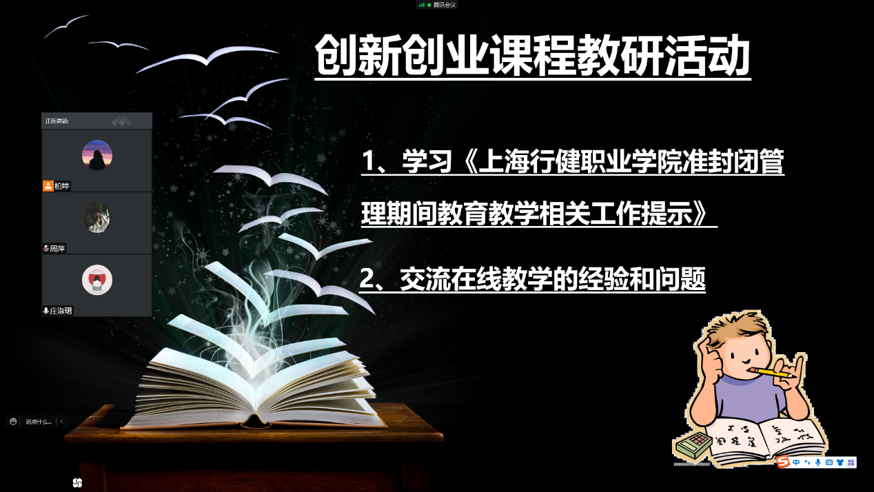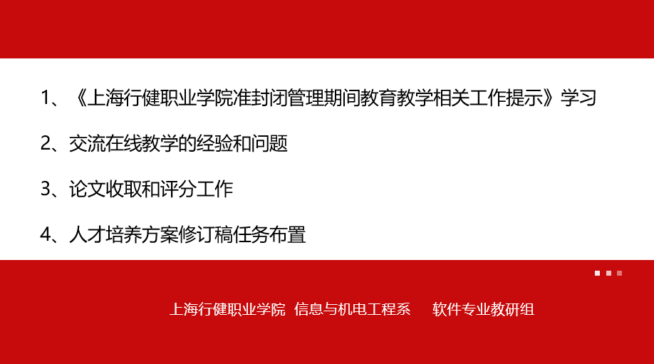 为保障线上教学效果,信机系组织各专业老师积极开展线上教研活动。信机系各专业教师重点学习了《星空电竞app下载安装苹果版准封闭管理期间教育教学相关工作提示》,进一步明确了线上教学质量监控的相关要求。随后,围绕“线上教学经验分享与问题探讨”“如何提升线上教学的有效性”等内容开展教研活动。老师们对课堂教学安排、优质教学资源的选取、互动环节、课堂答疑、教学平台的选取与使用、线上教学工具和录播软件等方面提出了意见和建议,为信机系顺利开展线上教学打下坚实的基础。此外,王莹主任提醒各位老师要注重跟踪学生实习和就业状态,并对2022级星空体育网址入口方案修订提出建议。教研过程中,老师们认真倾听、仔细记录 、相互学习,毫无保留地分享在线教学的宝贵经验,讨论在线教学过程中遇到的问题,集思广益,为提升线上教学质量献计献策。