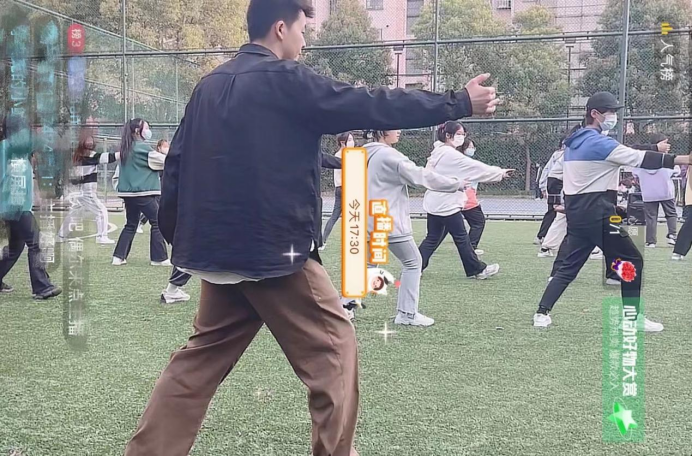 活动当天,同学们自觉遵守防疫要求,佩戴口罩、间隔一米以上。学系文体部同学化身“小老师”进行动作教学,伴随着音乐,同学们的一招一式尽显太极拳的柔美。他们动作柔和缓慢,一举一动、一意一念充分展现了太极拳的动静结合;刚柔快慢的态势,吸引了草坪旁同学的目光。线上直播更是受到了校外居家隔离同学们的欢迎,大家通过网络弹幕积极互动,并跟随直播一起运动。同学们纷纷表示活动不仅可以巩固自己体育课的学习,还可以强身健体、抗击疫情。