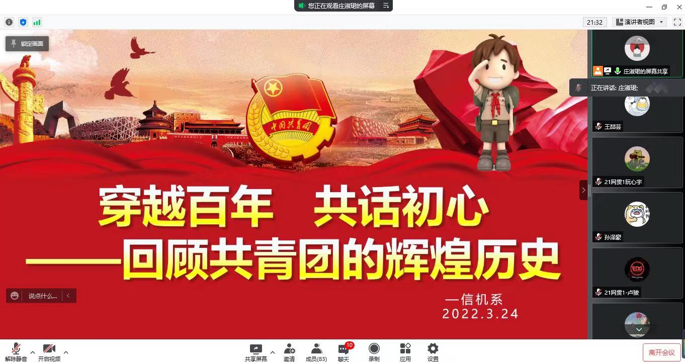本期团课培养采取团委和各学系培养相结合的方式,在从严从紧、落细落实的战“疫”背景下,各学系创新形式,通过“当青春遇上共青团”主题辩论赛、观看抗疫题材电影、布置线上“红色大寻访作业”、团史知识线上竞赛、“学四史 守初心 强自信”主题团课等形式,将理论与实践相结合,开展了各具特色的线上接续培养团课,引导学员们坚定跟党走的信仰,践行青春使命。