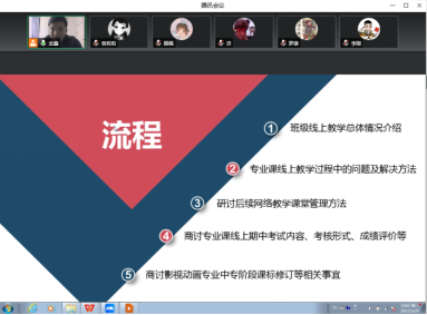 在线上教学的检查环节中,上海商业学校的老师们以问题为导向,汇报了第一批影视动画专业中高贯通新生线上学习的基本情况。在线上教学分析环节中,两校围绕线上教学的问题及解决方法,网络教学课堂管理方法以及线上期中考试考核内容、考核形式、成绩评价等进行探讨。罗雄主任根据不同问题,建议利用信息化手段提前预设学习内容,解决学生网络学习积极性不高的问题;完善信息化共享课程资源,提升未来精品课程的实力;根据学生的专业特点,调整教学手法,解决学生专业差异性的问题。