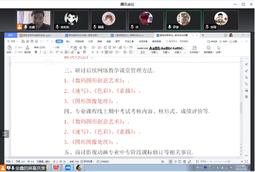 在线上教学的检查环节中,上海商业学校的老师们以问题为导向,汇报了第一批影视动画专业中高贯通新生线上学习的基本情况。在线上教学分析环节中,两校围绕线上教学的问题及解决方法,网络教学课堂管理方法以及线上期中考试考核内容、考核形式、成绩评价等进行探讨。罗雄主任根据不同问题,建议利用信息化手段提前预设学习内容,解决学生网络学习积极性不高的问题;完善信息化共享课程资源,提升未来精品课程的实力;根据学生的专业特点,调整教学手法,解决学生专业差异性的问题。