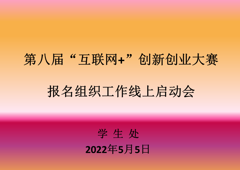 第八届中国国际“互联网+”大学生创新创业大赛于5月正式拉开帷幕。5月5日上午,学院召开此次大赛参赛组织工作线上启动会,学院副院长章卫芳出席会议,各学系书记、学生处相关工作人员、各学系双创工作联络教师参加会议。会议由学生处处长、学校创业指导站站长孙波主持。