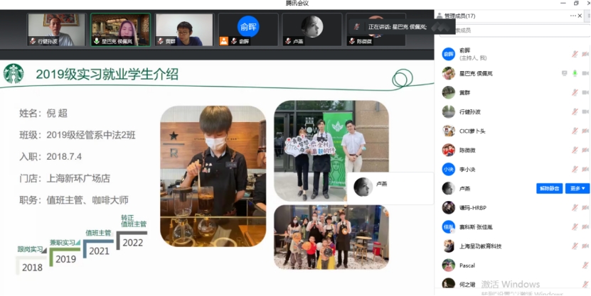 学院积极响应教育部关于开展2022届高校毕业生就业“百日冲刺”系列活动的要求,于5月10日上午召开校长访企拓岗促就业线上座谈会,会议由学生处处长孙波主持,黄群院长出席会议。会议还邀请了勋达(上海)贸易有限公司、上海源动鑫创能源科技有限公司、上海徐汇区民办嘉宝幼儿园、上海谦玛网络科技有限公司、上海星巴克咖啡经营有限公司、上海呈功教育科技有限公司以及赛科斯信息技术(上海)有限公司的总经理或人事负责人参与会议,就业工作相关工作人员参会。