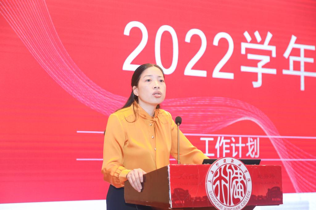 章卫芳副院长从政策学习、对标回顾、工作布置和未来展望四个方面对新学期的工作进行部署。她带领学院教师认真学习了近期出台的上海职教政策文件,将学院当前的工作推进与“十四五”规划工作重点进行对标,为新学期、新时期学院教育教学工作发展指明了方向。章副院长向与会教师详细介绍了本年度招生、录取整体情况,肯定了大家在过去一段时间取得的骄人成绩。她从顶层设计层面就师资队伍建设、专业(群)建设、教学资源库建设、校企协同育人、科研与社会服务等几个方面分析了目前我院发展面临的机遇与挑战,勉励大家找准定位,紧跟产业布局,发挥资源集聚效应,深化特色,以特色谋发展,通过高质量发展促进学院教育教学工作更上一层楼。