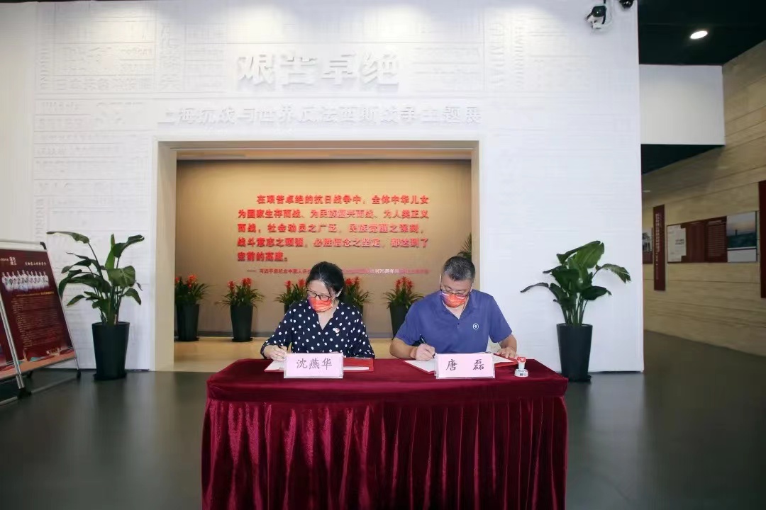 纪念活动后,党委书记沈燕华与淞沪抗战纪念馆党支部书记、馆长唐磊签约并揭牌思想政治教育实践基地。