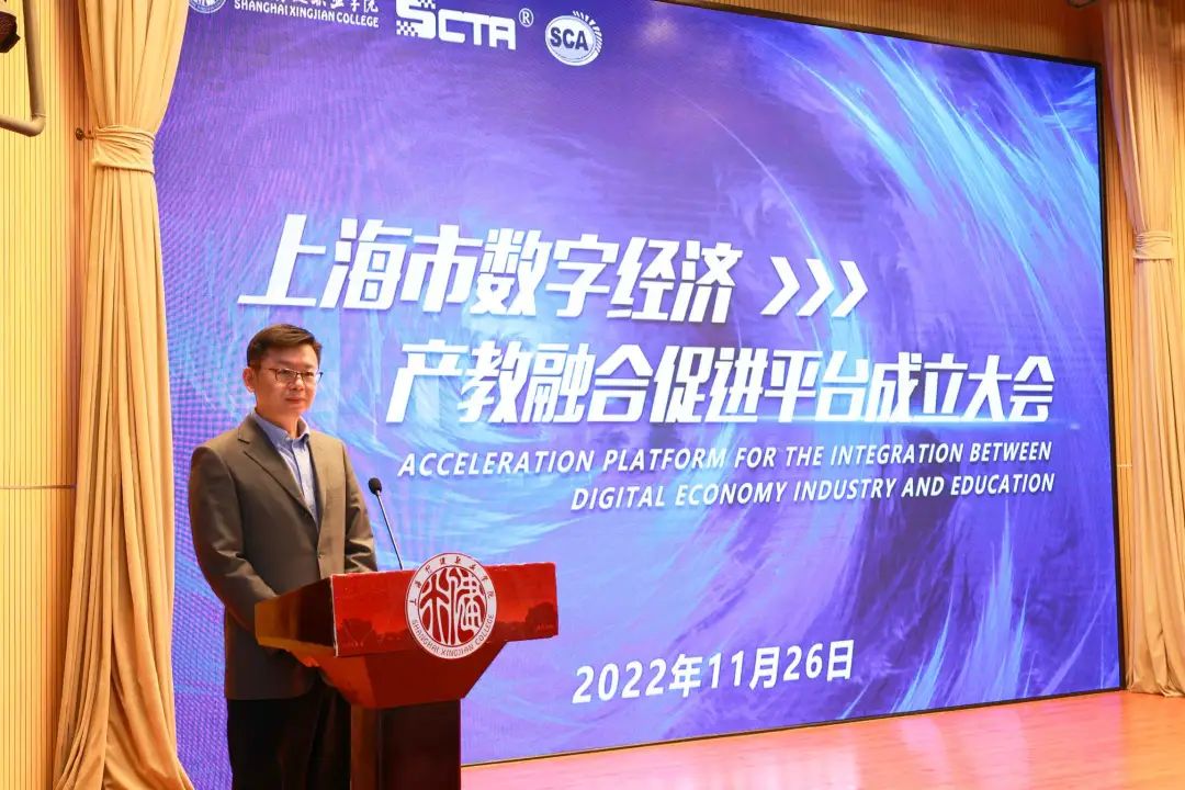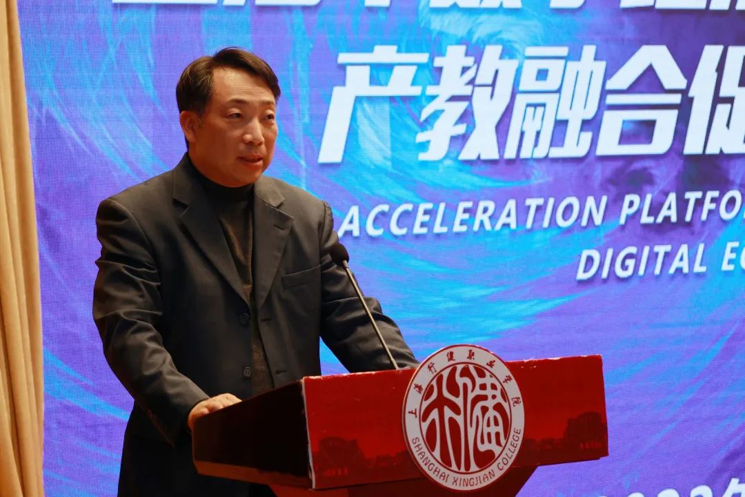 接着,上海市计算机行业协会秘书长裘维东致辞。他表示数字经济产教融合促进平台将以育人为本,协力探索出高质量星空体育网址入口产教融合发展模式,共同开创产教融合新局面,为上海打造具有世界影响力的国际数字之都贡献智慧和力量。