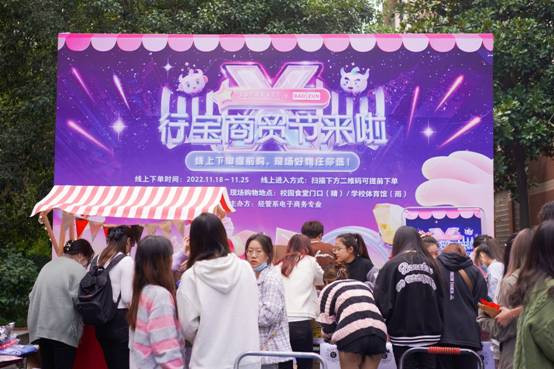 启动仪式于10点准时开始,学院副院长章卫芳、宝尊电商总监茅春燕、经管系副主任孙天慧、学系党支部书记谭可列席活动,数字商贸群主任钟一杰主持本次仪式。章卫芳副院长对本次商贸节活动给予了肯定与鼓励,认为线上线下的形式非常新颖,寓教于行,实现了教学与实践的融通,契合学院技能型星空体育网址入口的宗旨。茅春燕总监也对于校企双方长远合作抱有无限期许,愿同学在实战活动中积累更多的经验。商贸节活动一直持续到下午4点,现场人头攒动,气氛活跃。各小组“战果”丰硕,各小组同学运用课程所学技能运用,实践线上线下全渠道运营和营销流程,部分小组销售火爆,产品售罄。当天活动结束后,行宝商贸节16个小队共销售商品数量1570件,完成GMV44000余元,圆满实现了活动目标。