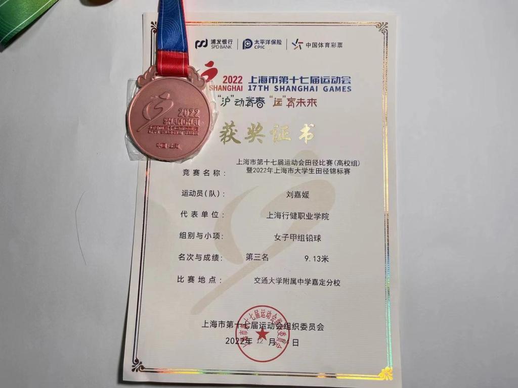 在刚刚结束的上海市第十七届运动会田径比赛暨2022年上海市大学生田径锦标赛中,学院学子刘嘉媛在女子铅球甲组比赛中发挥出色,从众多高校选手中脱颖而出晋级决赛,并最终登上领奖台,获得铜牌。