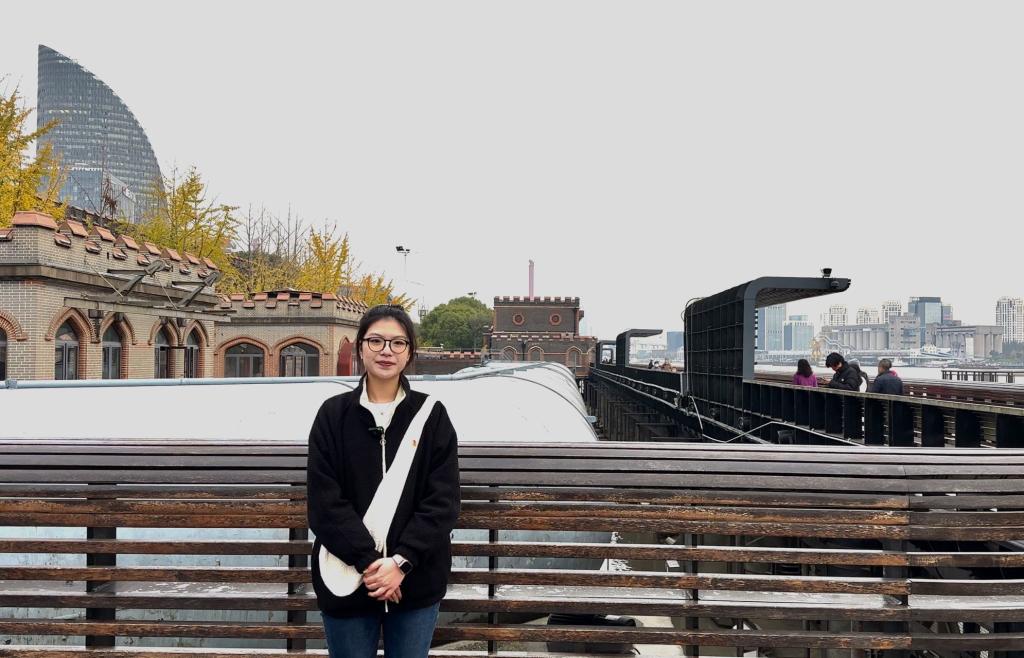 上海船厂旧址的前身是1900年由外商创办的瑞镕船厂。一墙之隔,停泊在一号船坞的便是最近刚刚打捞出水的长江口二号。22级日语班的陈康与马黍倢在上海船厂旧址前,共同为大家讲述在百年船厂开启古船“时光宝盒”的故事,回顾上海打捞局利用世界首创技术为构建具有中国气派的考古学添砖加瓦的事迹。未来,这里会向对公众展示古船考古保护的过程,打造一所活态的博物馆,成为杨浦滨江文化发展的新亮点。
