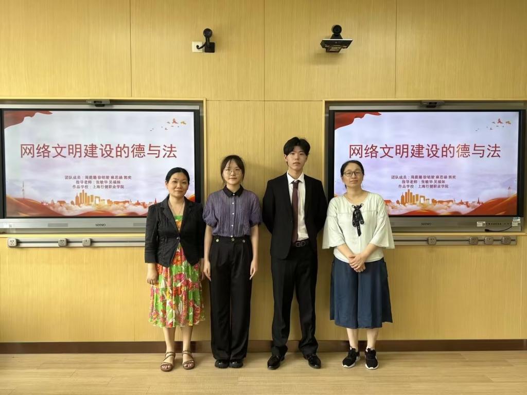 在两位教师的指导下,袁佳非、汤龙、葛妍、韩富强四位同学,根据自身赴西藏参军入伍和在上海疫情期间担任社区志愿者的经历亲身经历,厚植爱国情怀,展现责任担当。徐铭骏、周晨璐、麻思涵、郭奕四位同学从大学生的视角出发,分析当下网络世界存在的一些乱象,及如何做到网络世界文明有序,引导大学生不仅要遵守日常生活的道德与法律的规范,同时要能遵守网络世界的道德与法律,一同维护网络世界的文明秩序。
