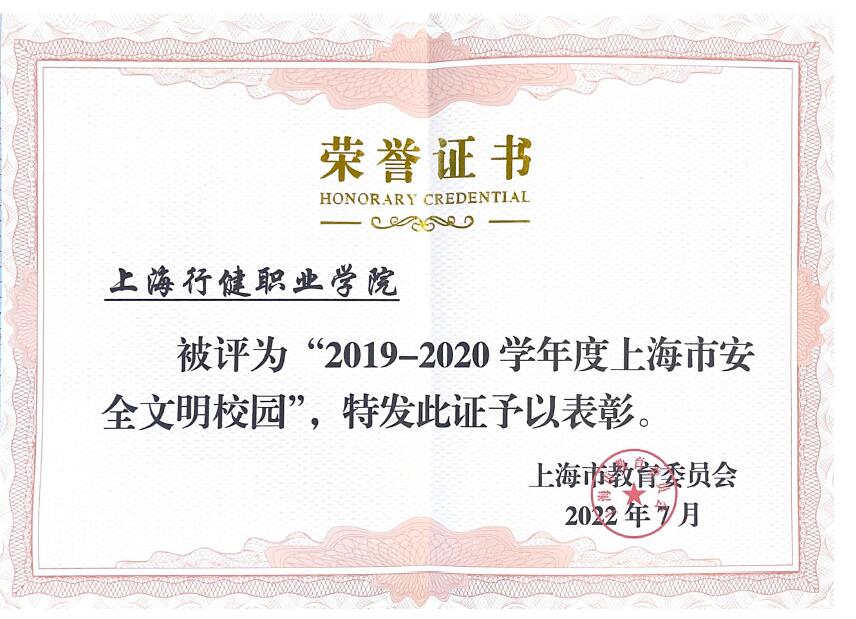 根据《上海市教育委员会关于开展2019-2020学年度上海市安全文明校园申报推荐工作的通知》(沪教委青〔2021〕12号)要求,经过前期自评、验收、公示等程序,学校成功创建2019-2020学年度上海市安全文明校园,被上海市教育委员会授予“上海市安全文明校园”称号。