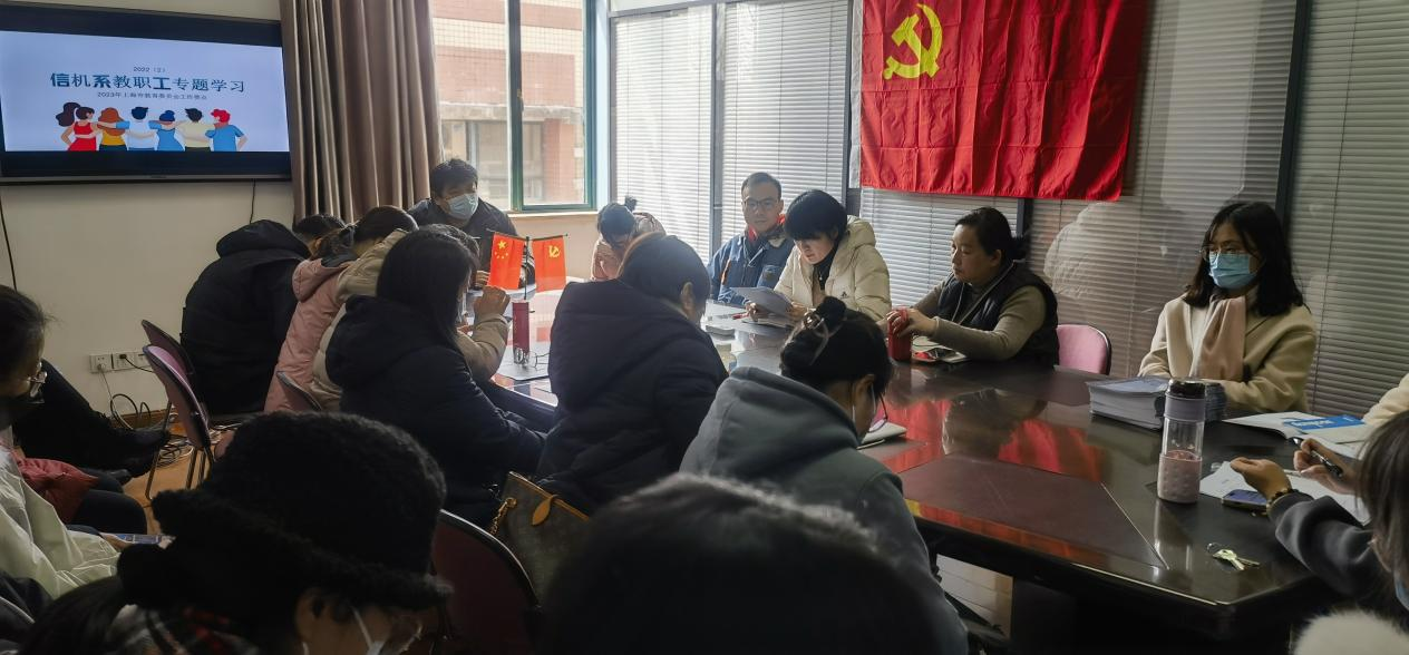 2月24日,信机系于召开新学期教职工专题学习工作会议,本次会议以“踔厉奋发 笃行实干”为主题。会议由信机系党支部书记王永主持,信机系主任王莹以及信机系全体教师与会。