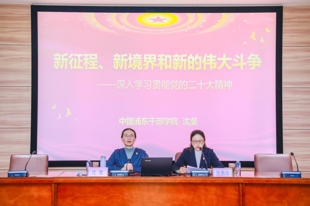 3月6日,学校邀请浦东干部学院党性教育研究中心主任沈斐教授以“新征程、新境界和新的伟大斗争——学习贯彻党的二十大精神辅导报告会”为题,为学校中层干部作学习贯彻党的二十大精神专题辅导。学校党委书记沈燕华主持。