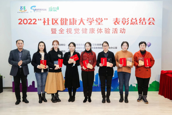 在市教委和市学习型社会建设与终身教育促进委员会办公室的指导和支持下,康复杂志社通过与各区教育局、学校的合作,开展了形式多样的市民健康学习活动,如健康讲座、课程培训、体验学习、知识巡展等形式,传播了科学的健康知识与养生文化,有效地提高了市民的健康素养。总结表彰会对2022年各区大讲堂项目开展的情况以及取得的丰硕成果进行了回顾和总结,表彰该项目贡献突出的优秀个人和活动优秀支持单位,上海市教委终身教育处副处长孙桂芳为受表彰的单位进行颁奖,我校获社区健康大学堂“最佳贡献奖”和“优秀组织奖”。