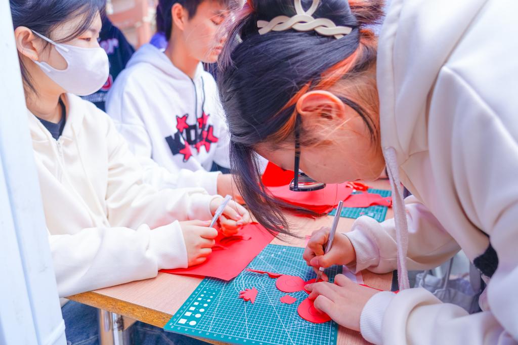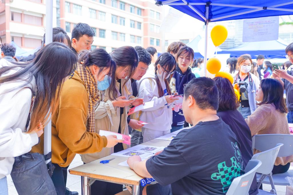 台下,各个社团互动展示也如火如荼地进行。各社团通过展板留言、幕布拍照、填写问卷、画画剪纸等创新性的形式展现了社团文化和社团的发展成果。同学们络绎不绝地领取社团活动入场券,积极参与互动,感受各个社团的不同魅力。