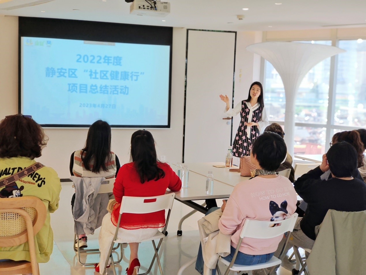 首先,王璐主任介绍了2022年静安区社区健康行项目的完成情况,她表示去年通过网络以线上直播课、录播课、电子书“静安区社区健康行-健康知识随身学”以及线上巡展等形式为全区14个街镇社区居民开展健康科普系列活动,在14个居委学习点进行海报专栏宣传,配送1200册《健康知识随身学》,活动参与人数超5000人,累计服务居民过万人,项目荣获2022年度社区健康大学堂最佳贡献奖。随后骆海英主任高度肯定了健康行活动已取得的成果,对各街镇过去一年的支持表示感谢,同时发布了2023年区级“社区健康行”融入市级“社区健康大学堂”的项目方案,并表示今年将进一步丰富活动形式,除了常规课程、讲座的科普形式外,还将引入“健康脱口秀”,以喜闻乐见的活动形式将健康科普带到社区居民身边。