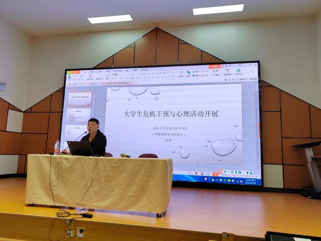 4月26日,经管系开展“大学生危机干预与心理活动开展”专题讲座,活动邀请了上海电子信息职业技术学院心理健康教育与咨询中心的易培老师进行辅导。经管系各班班长、团支书、心理委员及各班学生代表参加,讲座由经管系党支部书记谭可主持,经管系辅导员观摩学习。