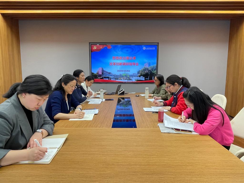 上海高校思政课建设活动月之际,为学习宣传贯彻党的二十大精神,贯彻落实习近平总书记关于大学生思想政治教育的重要论述,深入推进我校“大思政课”建设。4月28日,学校党委书记沈燕华、党办主任曹娜到思政部就思想政治理论课改革创新工作进行调研指导。思政部教师参加了调研指导会。