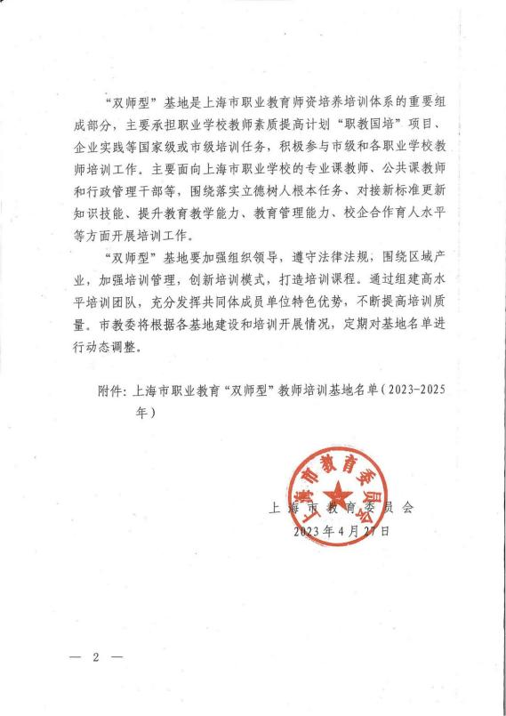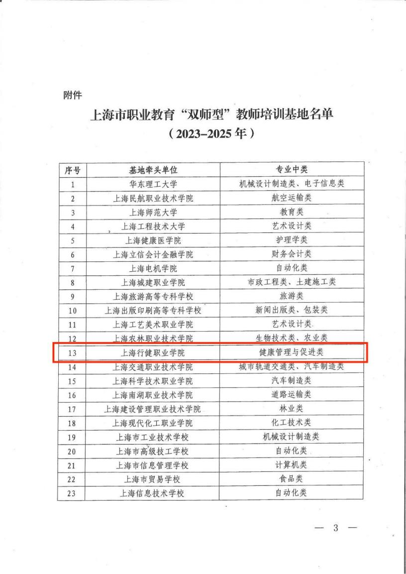 为深入贯彻党的二十大精神,落实《教育部教师工作司关于建设一批国家级“双师型”教师培训基地(2023-2025年)的通知》《中共上海市委上海市人民政府关于全面深化新时代教师队伍建设改革的实施意见》《上海市“十四五”职业院校教师培训工作实施方案》等文件精神,进一步完善上海市职业教育教师培养培训机制,加强职业教育高素质“双师型”教师队伍建设,经学前教育系婴幼儿托育服务与管理专业牵头、学校自主申报、专家综合评议和审核审定,我校获批上海市职业教育健康管理与促进类“双师型”教师培训基地(2023-2025年)。