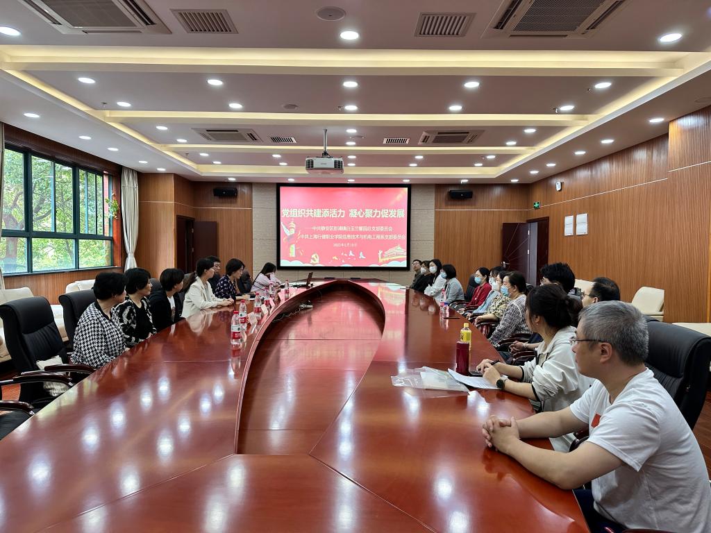 为加强基层党建工作,以党建工作凝聚人心,增强为民服务力量,根据《静安区关于构建机关企事业单位党组织和在职党员平急高效动员机制的若干措施》文件要求,在学校党委领导下,5月19日中午,信机系党支部与中共静安区彭浦镇白玉兰馨园总支部委员会共同开展党组织共建活动。会议由信机系党支部书记王永主持,白玉兰馨园党总支书记张春兰,白玉兰馨园党总支副书记、白玉兰居委会主任曹亮,白玉兰馨园党总支副书记、白玉兰居委会副主任黄琴,白玉兰馨园党总支委员、第一党支部书记徐紫雅,白玉兰馨园党总支委员、第四党支部书记朱庆玉,信机系主任王莹以及信机系全体党员教师共同参加此次活动。