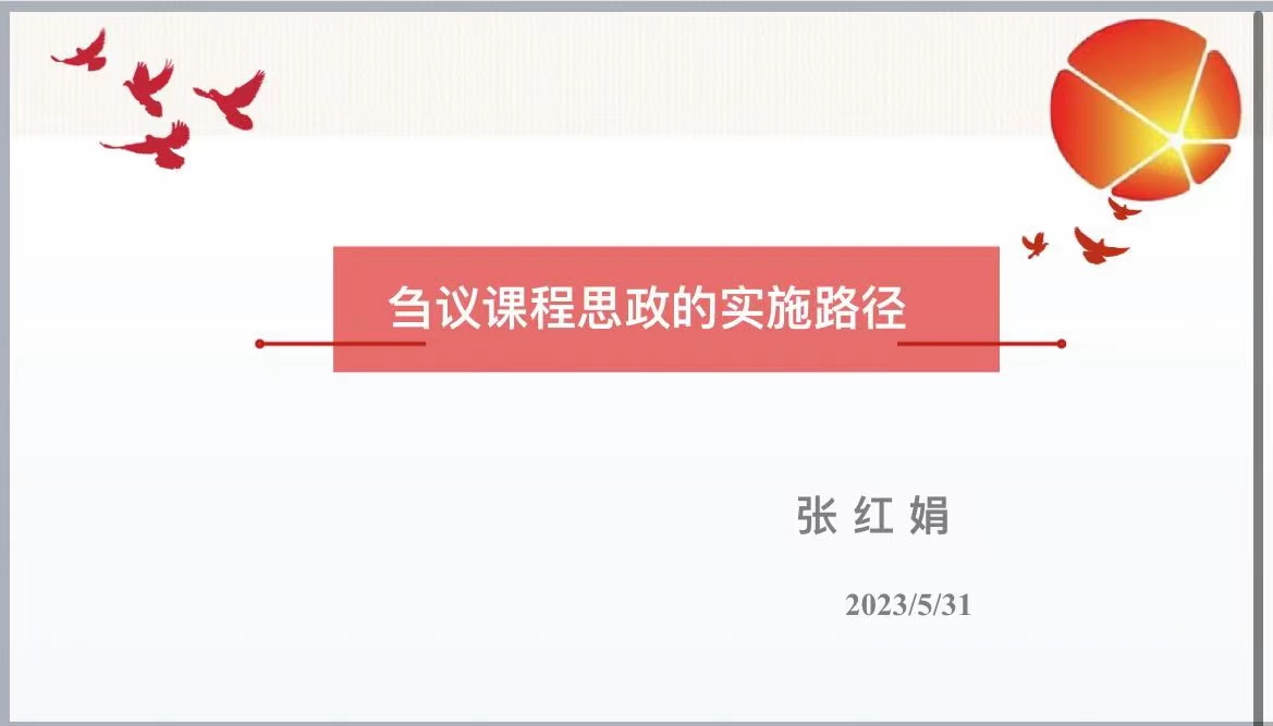 为落实立德树人根本任务,进一步推进课程思政建设,促进经验交流与推广,提升教师课程思政教学能力,5月31日上午,学校思政部与文山市职业高级中学开展了课程思政建设线上交流活动。活动由思政部张红娟老师主讲,主题为《刍议课程思政的实施路径》。