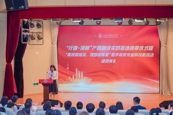 6月2日,“行健-澄穆”产教融合实践基地暨“竞技展风采,筑梦创青春”数字商贸专业群技能活动颁奖典礼在我校成功举办。上海市北高新集团副总裁周晓芳,上海澄穆实业发展有限公司董事长朱才彬,上海宝尊集团高级副总裁兼工会主席郭元龙,上海信息技术学校党委书记周健,上海设计先锋文化传播有限公司总经理倪晟铠,星空电竞app下载安装苹果版校长黄群、副校长章卫芳出席活动。