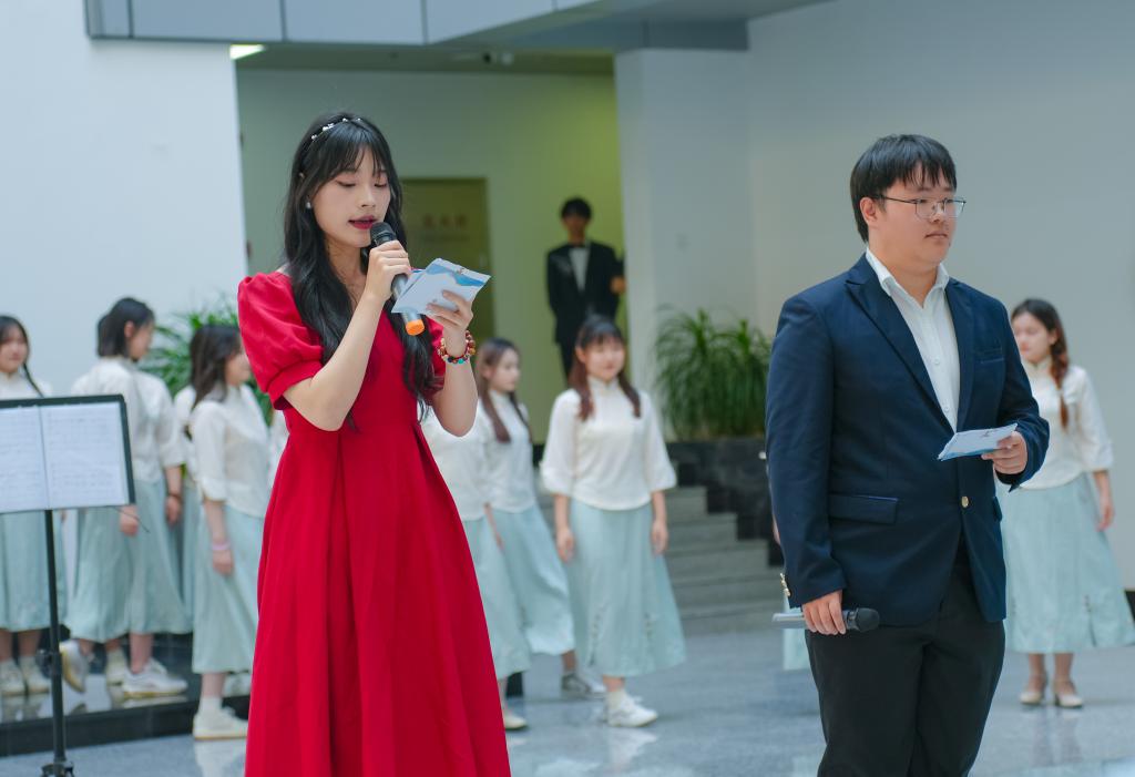 艺术团专项汇报在合唱团悠扬的歌声正式拉开本次活动的帷幕。合唱社的师生带来了“学堂乐歌”“古典诗词”“时代新声”三个系列,用歌词寄托情感,用合唱传递力量,感受时代脉搏,凝聚奋进力量。