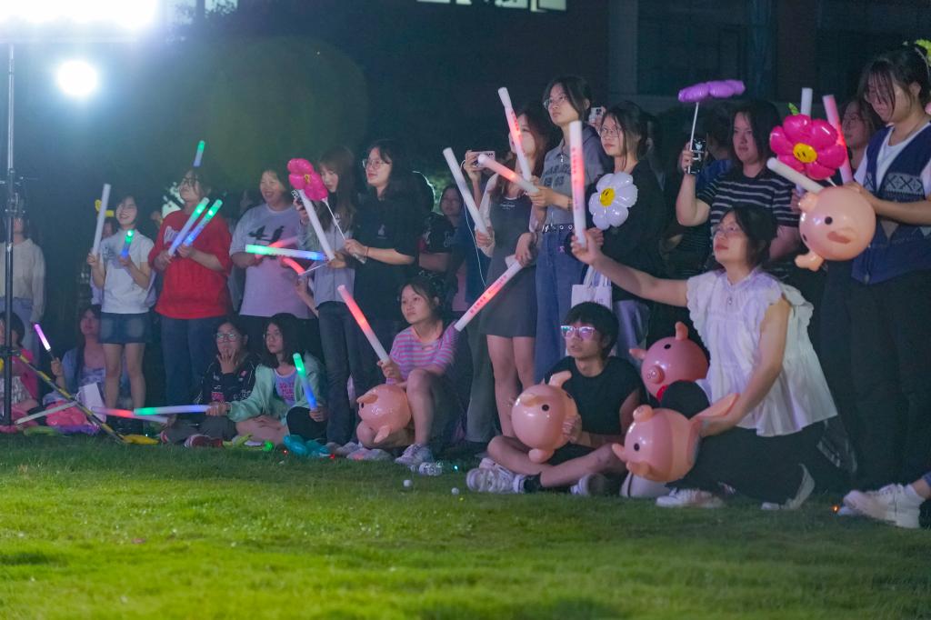 灯光闪闪,余音袅袅。首届草坪音乐节现场灯光闪耀,精彩连连,歌曲翻唱、舞蹈表演及其他创意节目,将夏日下的校园氛围拉满,展示出学生的青春风采与精神风貌,引起全场观众的热烈反响。