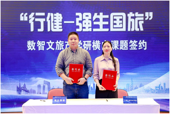 活动现场,校企双方代表进行了“行健-强生国旅”数智文旅产学研横向课题签约以及“行健-金棕榈、强生国旅”数智文旅产业学院的签约。周齐佩书记、周晓芳副总裁、瞿蕾总经理、段艳梅董事长、黄群校长共同为“行健—金棕榈、强生国旅”智慧文旅产业学院揭幕。