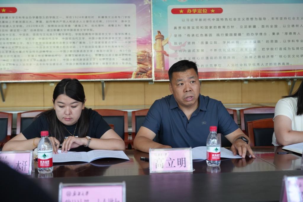 首先,国家语言文字基地(新疆大学)高立民副主任向各位“石榴籽”帮扶队成员表示欢迎,并对团队在新疆吐鲁番和乌鲁木齐两地对推普工作所做的努力表达感谢。接着介绍了国家语言文字基地(新疆大学)的基本情况及当下开展的主要推普相关活动。“石榴籽”实践帮扶队由指导教师陈曌作为代表介绍了团队的基本情况、此次实践调研的开展情况、团队未来工作方向及愿景。陈曌老师提到,此次实践活动的开展让“石榴籽”团队对于推普事业的认识更加深入,未来希望能够与更多当地的优质校、企、事业单位合作,助力吐鲁番艾丁湖镇花园村“大学生实践基地”的推普工作,为民族地区普通话推广做出更大贡献。