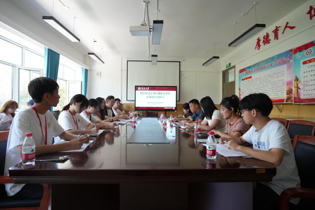 随后,两校师生们针对“推普助力乡村振兴”相关社会实践服务交流了心得体会,两校教师代表也就社会实践开展形式、高校校际交流合作平台搭建等交换了意见。