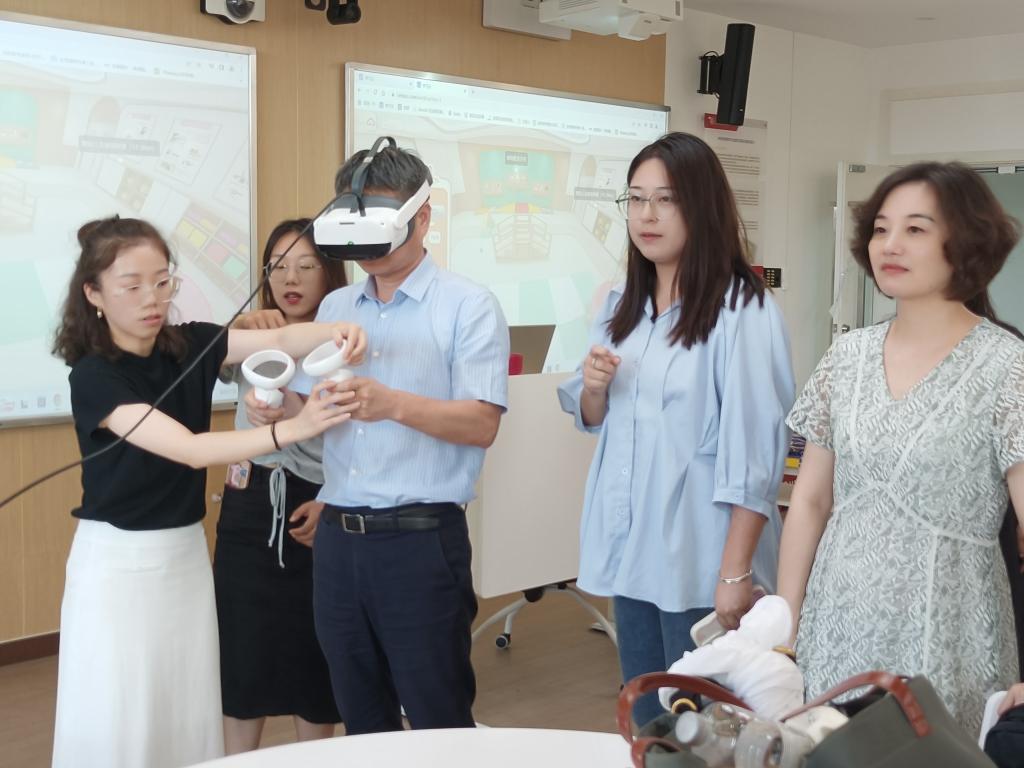 随后,李院长带领大家到虚拟仿真实训基地、行健宝宝屋托育实训中心、婴幼儿游戏实训室等,展示虚拟仿真实训环境、托育园和仿真幼儿园的实训场景。