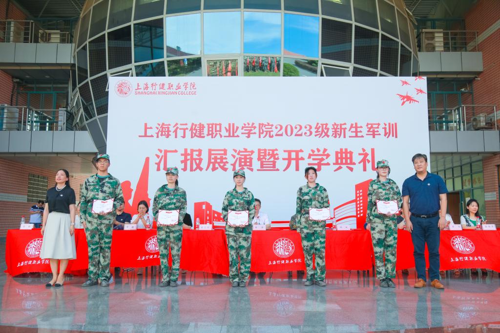 9月1日下午,我校2023级军训总结展示会暨开学典礼在体育馆前大草坪隆重举行。学校校长黄群,副校长章卫芳、副校长顾斌,武警上海总队机动二支队一大队教导员郭玉浩以及学校各二级学院、马克思主义学院、基础教育学院的院长出席本次大会。大会由学工部部长、武装部部长孙波主持。