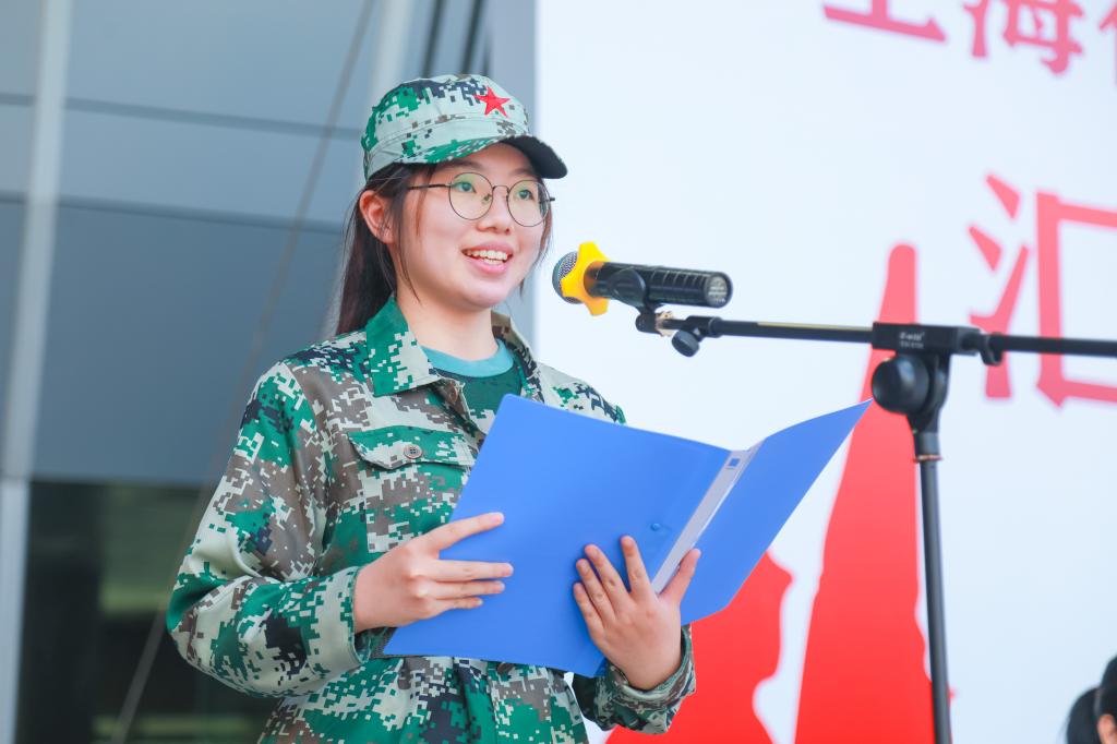 随后,参训学生代表2023级学前中高贯通3班颜欣宜同学发言。她表示,虽然军训期间的天气情况给训练带来了一定的阻碍,但同学们不怕困难、努力克服,有力彰显和诠释了军训的意义。行健学子会怀揣“国之大者”的情怀,把军训淬炼的拼搏精神、担当意识内化于心,外化于行,不断砥砺爱国担当的本色,成为全面发展的卓越人才。
