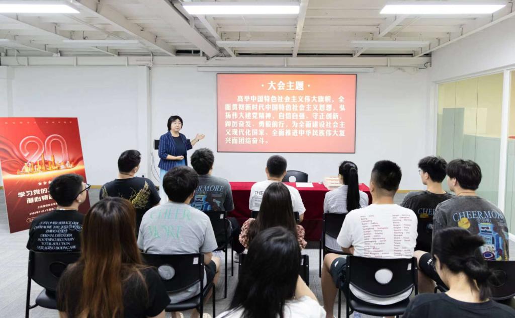 数字商贸学院谭可书记以党的二十大精神为指导进行理论宣讲。她运用可视化理论地图、精神谱系卡片等,将党的理论学习与个人成长发展相结合,引导青年员工树立正确的理想信念,勇于担当作为,在服务社会、服务消费者中积极进取、开拓创新、拼搏不止。