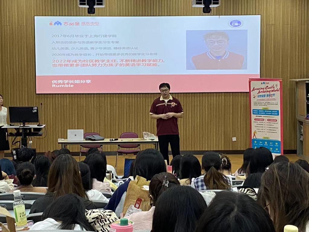 2024届英语专业全体学生参加宣讲会。会上,吉的堡教育集团总监SHARON对企业文化、企业的发展现状、发展前景、岗位需求等学生关心的问题一一做了详细的介绍。外语学院17届优秀毕业生杨卓作为吉的堡教育集团两个校区的教学主任,从自身经历出发,分享在职业生涯中提升自己专业能力的技巧,引导学弟学妹做好职业规划,帮助他们树立正确的就业观念。