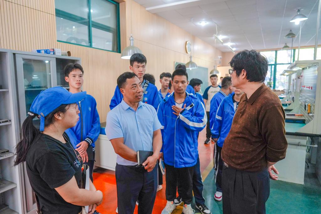 随后,教育学院潘太健老师带领师生参观了学前教育专业实训室,信息学院石佳伟、金捷老师带领师生参观了飞行器制造专业和汽车运用与维修技术专业实训室。老师们面对好奇的同学们,给他们耐心细致地讲解了各实训室的功能、分类及实验实训项目等,帮助职业高中学生直观了解专业内容和学科特色,激发学生们的求实探索的科学精神。