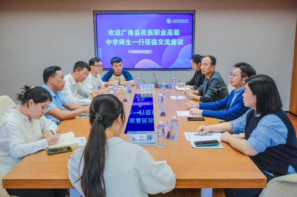 为进一步促进东西部职业教育融合发展,推进沪滇职业教育协同合作,11月1日,云南省广南县民族职业高级中学的党总支书记张益跃、德育处处长周统标等六位老师和十九名学生一行来校参观交流,学校校长黄群、党政办公室主任曹娜、学生处处长孙波热情接待了来访师生。