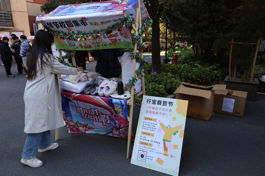 活动当日,星空电竞app下载安装苹果版副校长章卫芳和上海宝尊电子商务有限公司集团办公室总监茅春燕亲临活动现场指导。尽管寒风凌冽,但是同学们依然一丝不苟地完成了出摊、陈列、推广和宣传等一系列工作。11时活动达到高潮,现场人头攒动,成交旺盛,学校领导、老师们也参与到了商贸节中。
